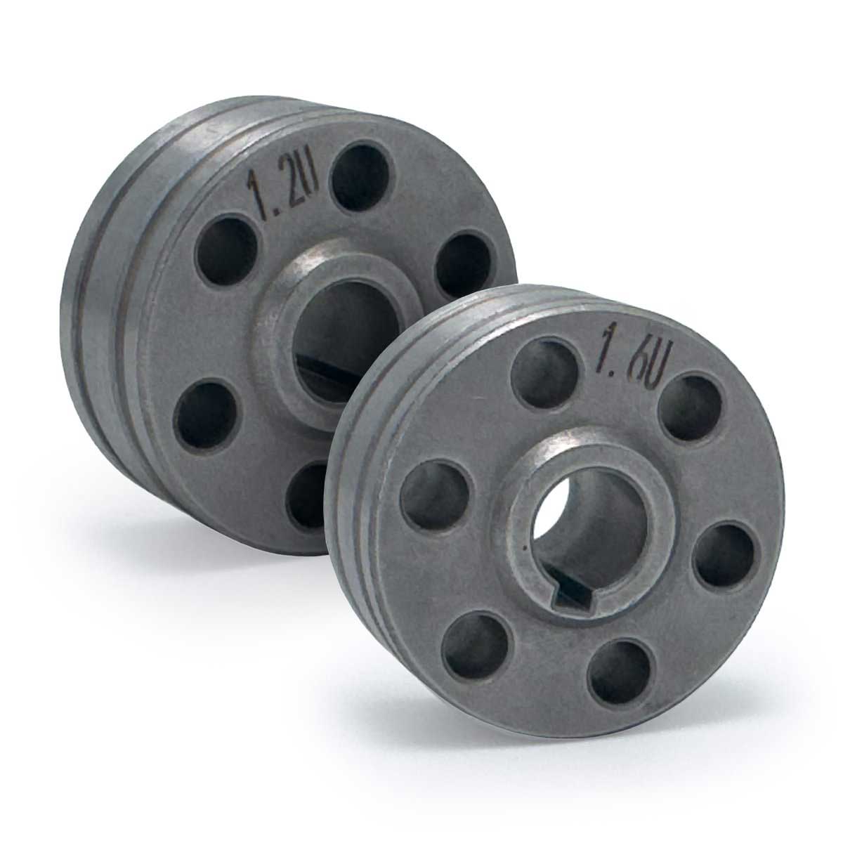 U-groove pulley for T1 wire feeder. For aluminum welding. Compatible wire diameters: 1.2mm / 1.6mm. Pack of 2 units.
